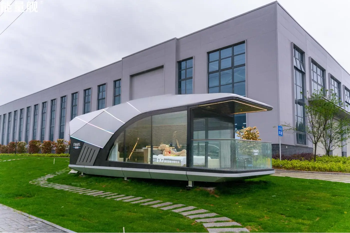 Occupancy: 2 Area: 24.8㎡ Weight: 3.5t Dimensions: 7.5m × 3.3m × 3.3m Main Frame: Galvanized square pipe steel structure Maintenance Structure: Outer aviation aluminum plate 2.5mm, 70mm polyurethane insulation, fluorocarbon baking paint Doors & Windows: Entrance with smart lock, balcony & window glass 5+12A+5 low-e, bathroom sliding glass door Interior Walls: Bamboo and wood fiber board; waterproof substrate in bathroom Flooring: Cement pressure plate 18mm, laminated wood 12mm, tile 400×400mm, balcony plastic 23mm Ceiling: Joinery base with bamboo & wood fiber finish Electrical: Strong & weak power boxes, five-hole & three-hole sockets, router included, card access system Water & Drainage: PPR water pipes, PVC drain pipes, insulated system with electric tracing Lighting: Indoor lamp strip, outdoor downlight strip, optional transformers (800, 400, 200) Bathroom Hardware: Toilet, wash basin, tap, showerhead, multifunctional bath bomb, smart mirrors, aluminum shelves Custom Cabinetry: Multi-functional cabinets available Equipment: Air conditioning, water heater, optional intelligent speech, fresh air system, custom kitchens, audio, geothermal control, wood veneer finishing